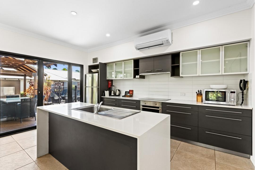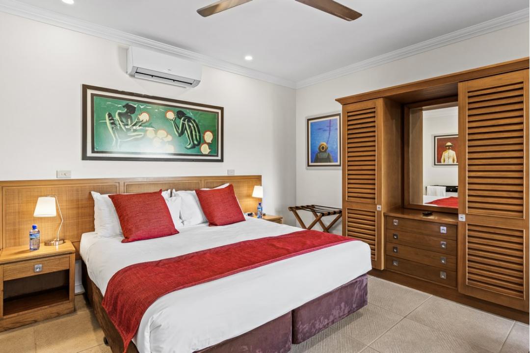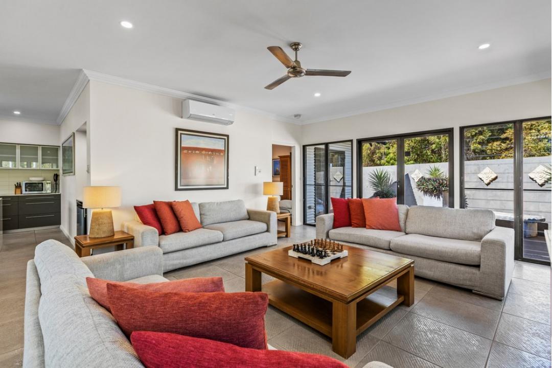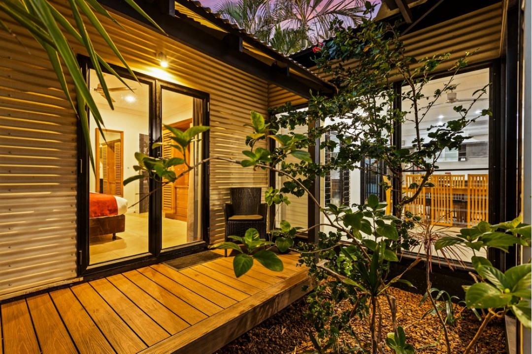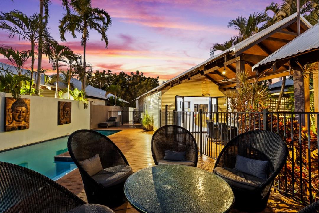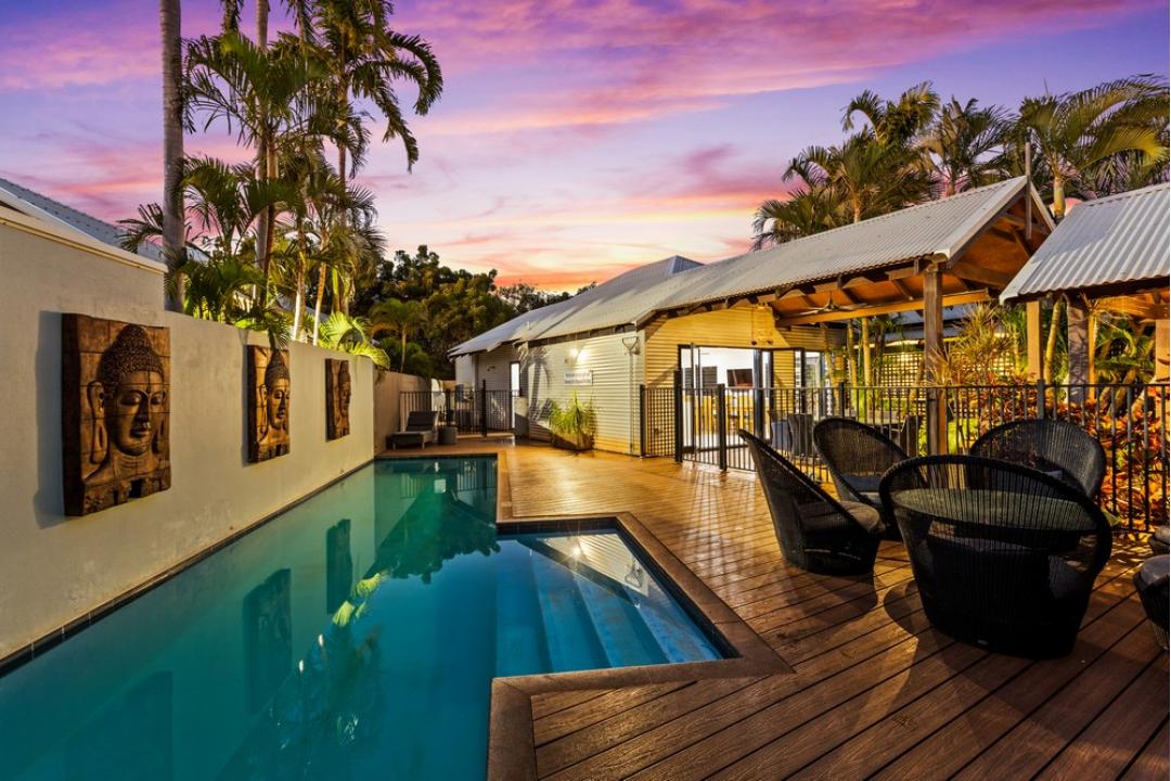 Architecturally designed pool villas are heralded by impressive, oversized recycled teak courtyard doors, behind which the first "room" is outdoors, complete with stainless barbecue, tropical garden and large decking and dining area. All pool villas offer modern spacious living areas in air-conditioned comfort. They feature their very own private plunge pool with decks and sun lounges. All bedrooms have their own balcony, LCD TV with 10 Free Foxtel channels and also large ensuites with walk-in rain showers. Bedrooms 2 and 3 are semi-detached remaining under the same roof line however accessed from a private open deck.
